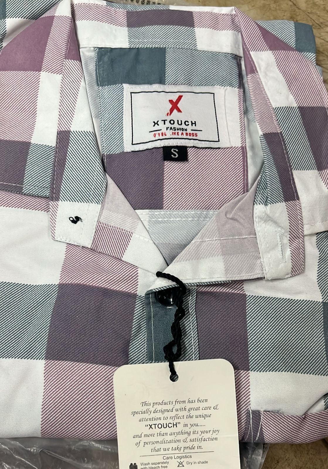 X Touch Pink And White Casual Check Shirt For Men Size S