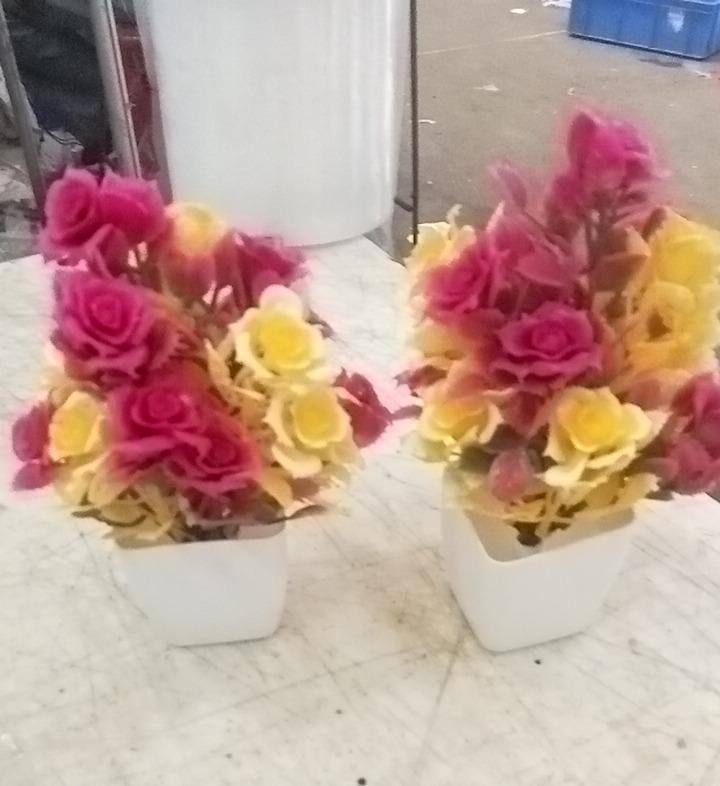 Yellow And Pink Colour Artificial Rose Plant For Home Pack Of 2