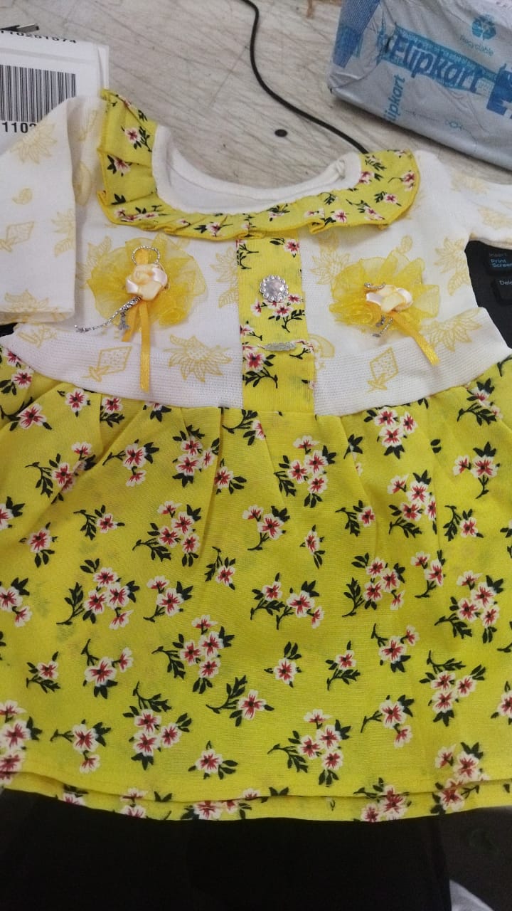 Yellow Color Printed Kids Girls Frock Size Newborn