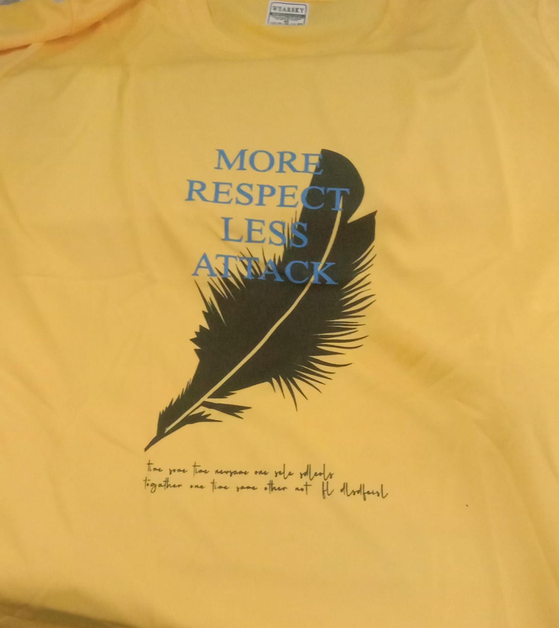 Yellow Cotton More Respect Less Attack Printed Round Neck T Shirt For Men Size M