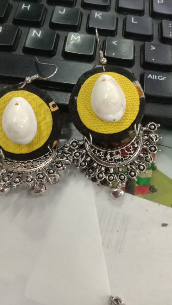 Yellow Oxidised Handmade Earrings For Women