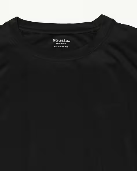 YOUSTA Men Regular Fit Crew Neck T Shirt Black Colour L size
