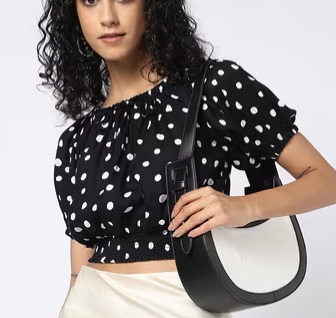 YOUSTA Women Polka Dot Print Relaxed Fit Off Shoulder Top SIZE XL COLOUR BLACK