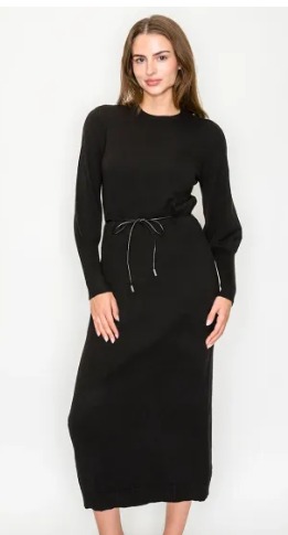 Zara Black Rib Knit Midi Dress With Belt For Women Size L